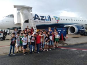 “Os alunos visitaram também o Centro Integrado de Operações Aéreas (CIAOPER), onde puderam conhecer os aviões e os helicópteros da corporação e a função de cada um deles, além disso, as crianças puderam entrar no helicóptero”, acrescentou Inês. Depois, foi a hora de conhecer uma aeronave utilizada em voos comerciais e simularam um embarque, entraram na cockpit (cabine do Piloto). Pelo Finger, ponte que faz ligação entre o terminal de aeroporto e o avião, foi simulado o desembarque.