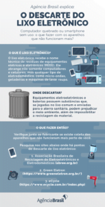 “Os produtos eletroeletrônicos descartados no lixo comum impossibilitam a reciclagem deles por entidades e claramente prejudicam o meio ambiente. De certa forma, impede que esses produtos tenham uma destinação correta, como é a atividade de entidades gestoras”, explica a gerente executiva da Associação Brasileira de Reciclagem de Eletroeletrônicos e Eletrodomésticos (Abree), Mara Ballam.