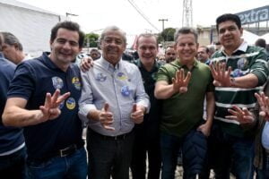Candidato à reeleição ao governo do Estado, Mauro Mendes (União Brasil) visitou na manhã deste sábado (20), o Mercado do Porto e a Praça 8 de Abril, ambos em Cuiabá e participou de ato de adesivagem de veículos na Avenida Couto Magalhães, em Várzea Grande.