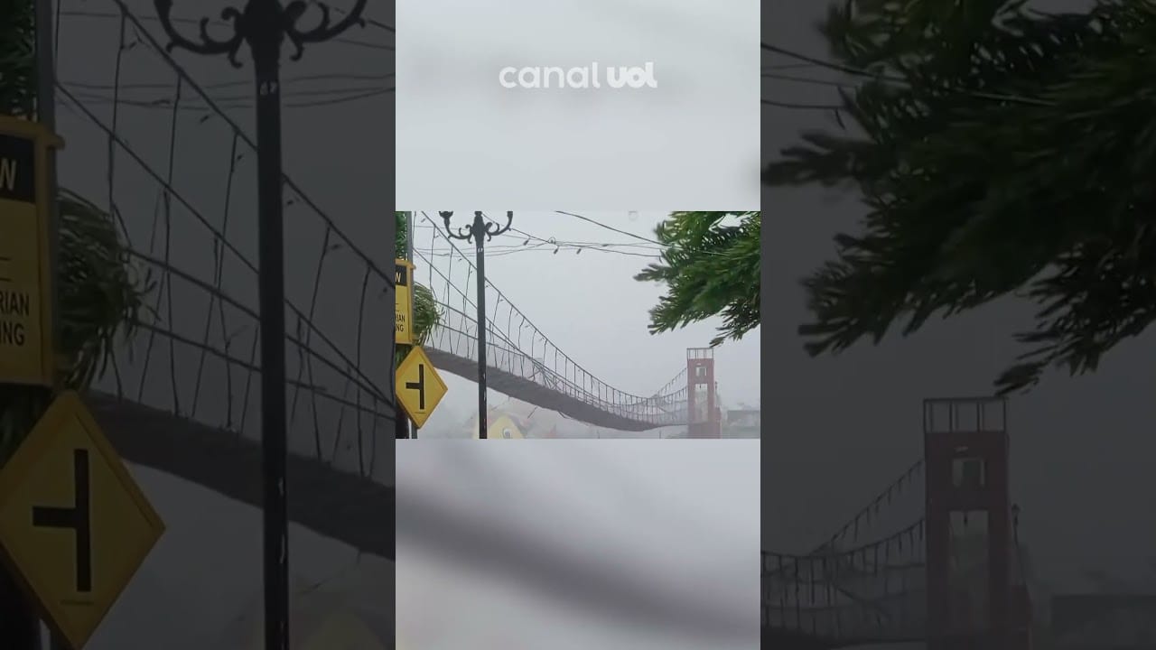 Uma ponte suspensa no município de Camaligan, na província de Camarines Sur, nas Filipinas, foi flagrada balançando intensamente por causa dos ventos fortes que antecedem a chegada do tufão Fung-Wong à costa leste.