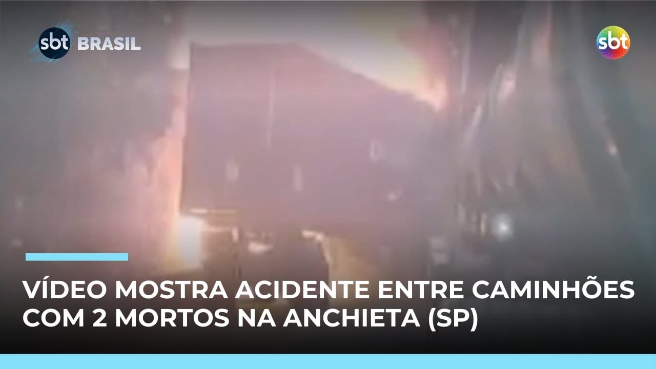 Dois motoristas morreram após um grave acidente envolvendo quatro caminhões no km 53 da rodovia Anchieta, sentido litoral, em Cubatão (SP), na tarde desta quinta-feira (27). A batida provocou engavetamento, incêndio e bloqueio total da via. Imagens obtidas pelo SBT News revelam o momento exato em que um dos caminhões, trafegando em alta velocidade, atinge outros dois veículos na pista. A força do impacto fez uma das carretas pegar fogo imediatamente.