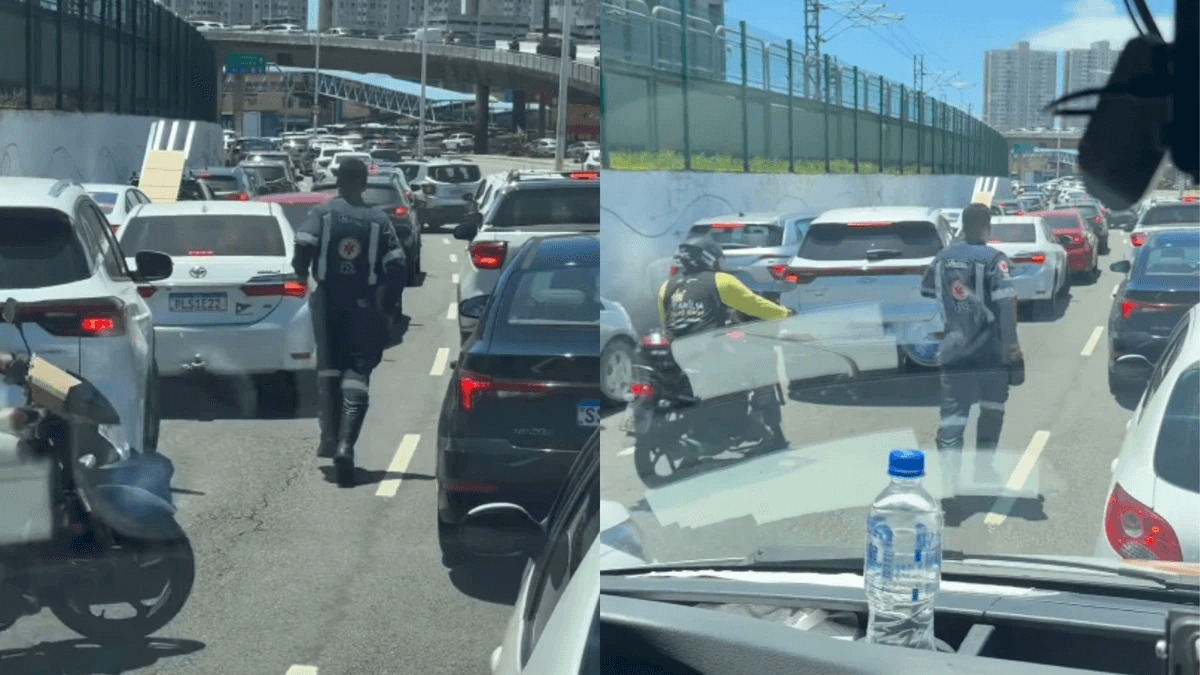 Um médico do Samu de Salvador viralizou nas redes sociais nesta sexta-feira (19) após sair da ambulância para pedir que motoristas liberassem a via, em meio a um congestionamento. O episódio aconteceu na Avenida Tancredo Neves, uma das mais movimentadas da capital baiana. A equipe seguia para atender uma vítima de acidente de moto, mas o veículo de emergência ficou preso no trânsito. A cena foi registrada por uma colega de trabalho.