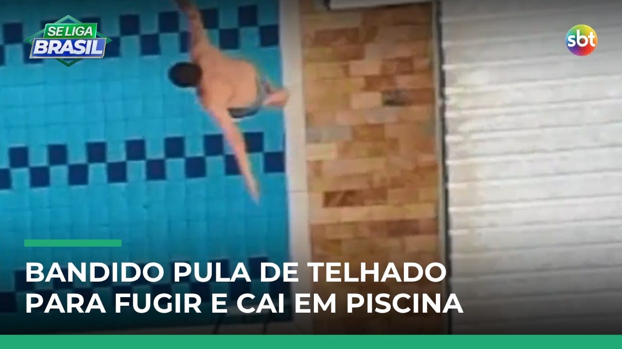 Um suspeito de furtar baterias de caminhão foi preso após uma perseguição da Polícia Militar na cidade de Cerquilho, no interior de São Paulo. Durante a fuga, o homem pulou do telhado de uma casa e caiu dentro da piscina do imóvel. Mesmo assim, ainda tentou escapar a pé, mas foi surpreendido por policiais que cercavam a residência. O criminoso tem diversas passagens pela polícia, incluindo porte ilegal de arma, tentativa de homicídio, violência doméstica e estupro.